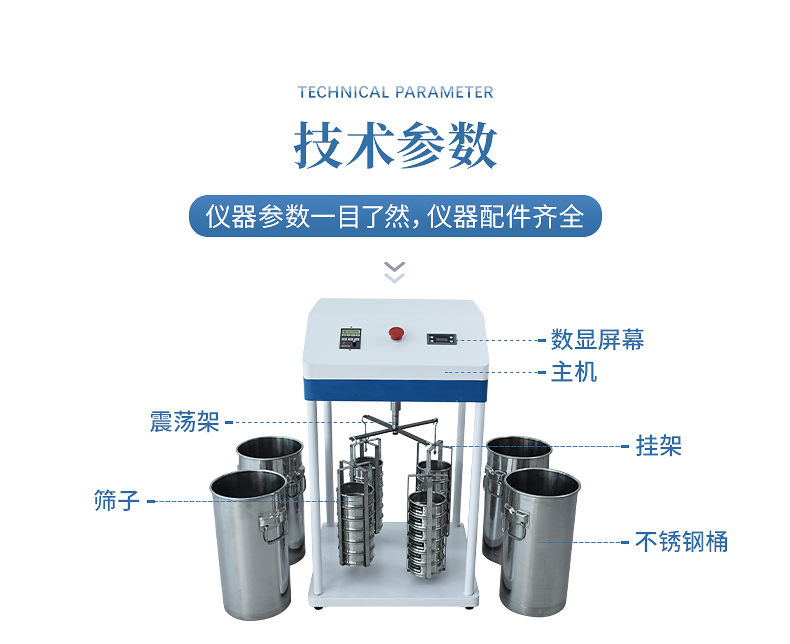 4、標(biāo)準(zhǔn)篩孔徑:10mm,7mm,5mm,3mm,2mm,1mm,0.5mm,0.25mm。(可選配其他規(guī)格孔徑)